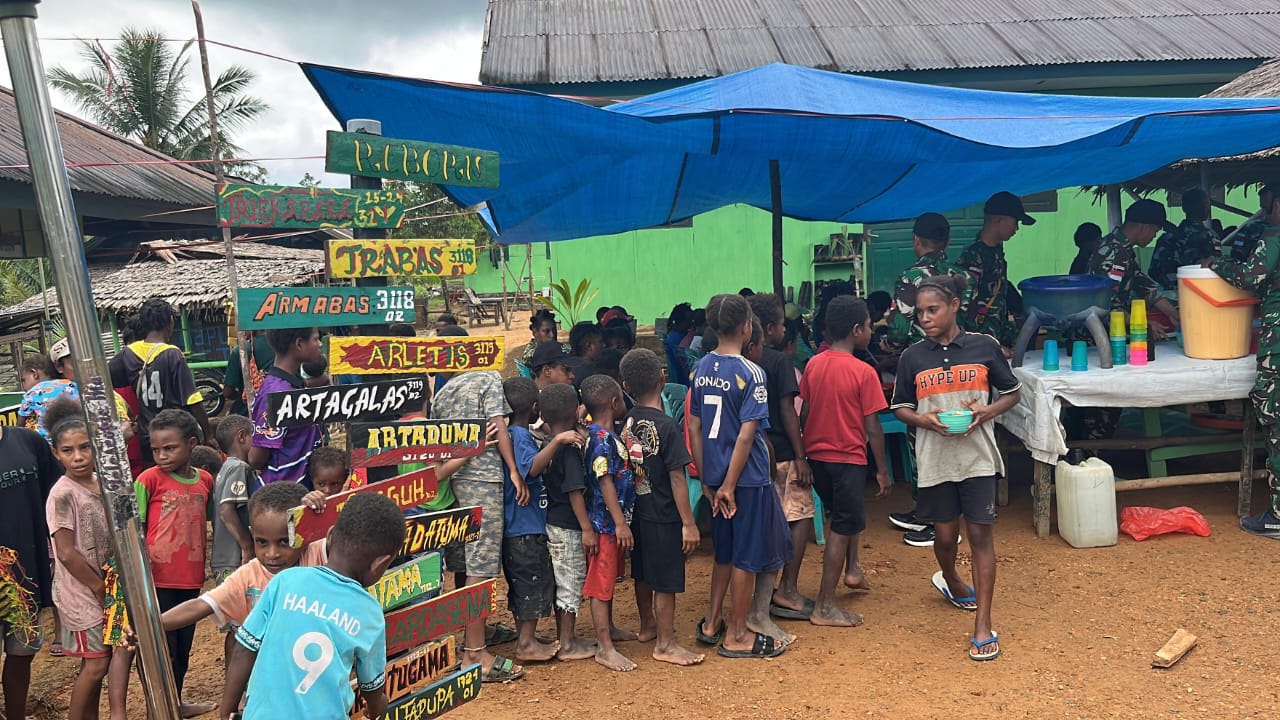 Home / TNI/Polri / Nasi Kuning, Semangat Merah Putih: TNI dan Warga Gelar Syukuran Rayakan HUT RI di Kampung Kombut