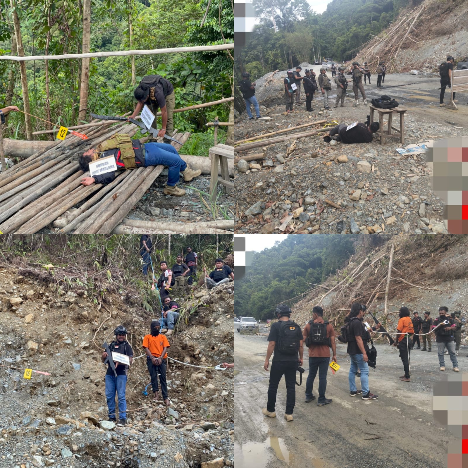 Rekonstruksi dilakukan dengan pengamanan ketat, melibatkan 15 kendaraan taktis, 24 pucuk senjata laras panjang, serta perlengkapan bodyvest dan helm tempur.