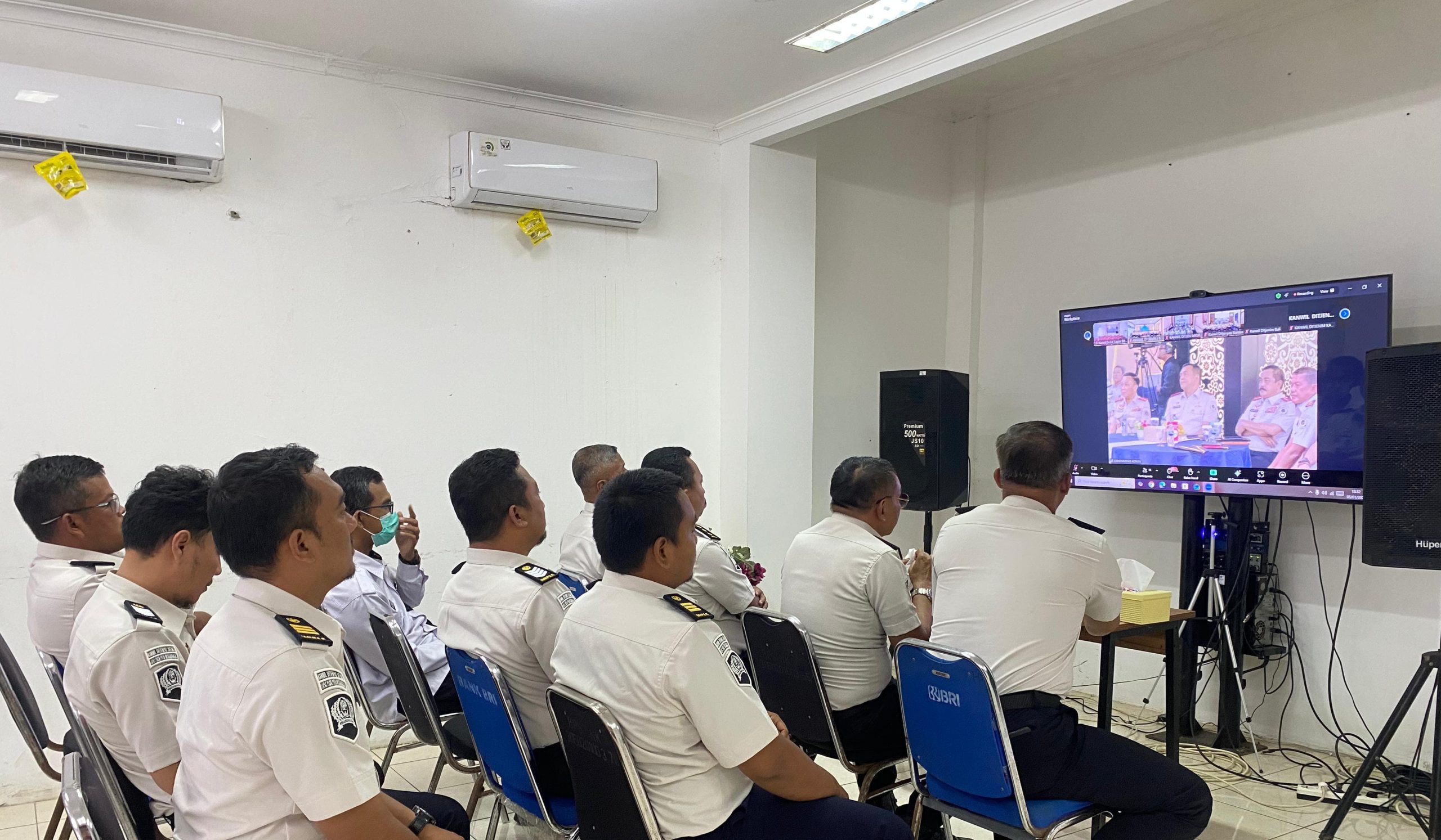 majalahsuaraforum.com-Kalapas dan Jajaran pegawai Lembaga Pemasyarakatan (Lapas) Pasir Putih dan Pegawai Kementerian Imigrasi dan Pemasyarakatan (Kemenimipas) melaksanakan apel bersama Calon Pegawai Negeri Sipil (CPNS), serta peserta magang berlangsung di Aula zoom meeting Lapas Pasir Putih, Senin(05/01).