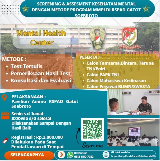 Melalui layanan ini, RSPAD Gatot Soebroto berharap dapat membantu memastikan kesiapan mental peserta secara objektif dan profesional, sehingga mampu mendukung keberhasilan dalam proses seleksi maupun pengembangan karier ke depan. (RSPAD GS)