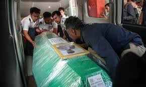 Kedua jenazah tersebut mendarat sekitar pukul 16.30 WIB menggunakan maskapai ECA Airlines dengan nomor penerbangan ECA592. Setibanya di bandara, proses penanganan jenazah dilakukan sesuai prosedur melalui fasilitas Human Remains Terminal Kargo.