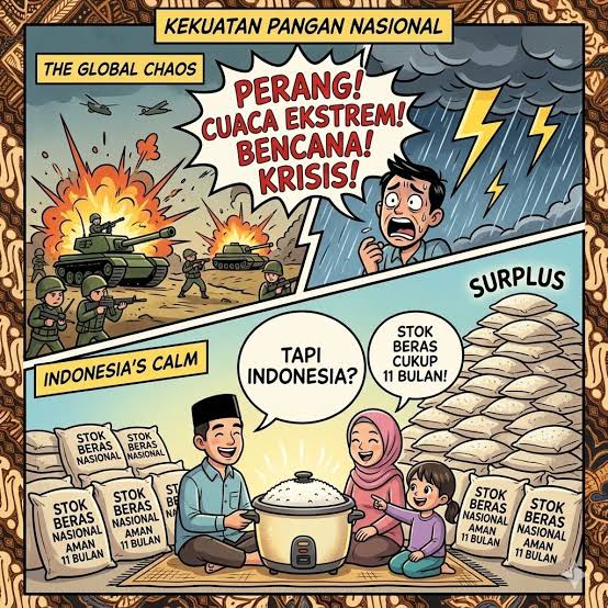 Dengan kondisi saat ini, Indonesia dinilai tidak hanya mampu menjaga ketahanan pangan nasional, tetapi juga berpotensi berkontribusi dalam menjaga stabilitas pangan di tingkat regional maupun global.