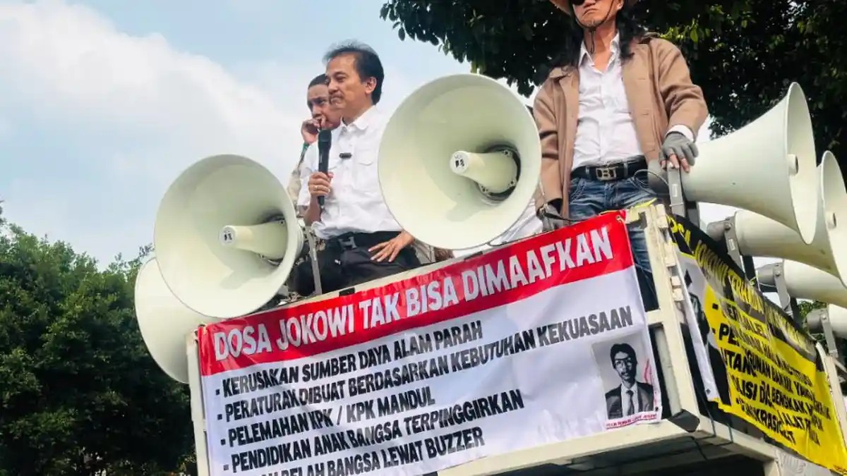 Aksi unjuk rasa itu dipimpin oleh Roy Suryo, yang turut menyampaikan orasi secara langsung di hadapan para peserta. Dengan menggunakan pengeras suara dari atas mobil komando, Roy Suryo menyampaikan tuntutan agar persoalan yang berkembang di tengah masyarakat dapat dijawab secara terbuka.