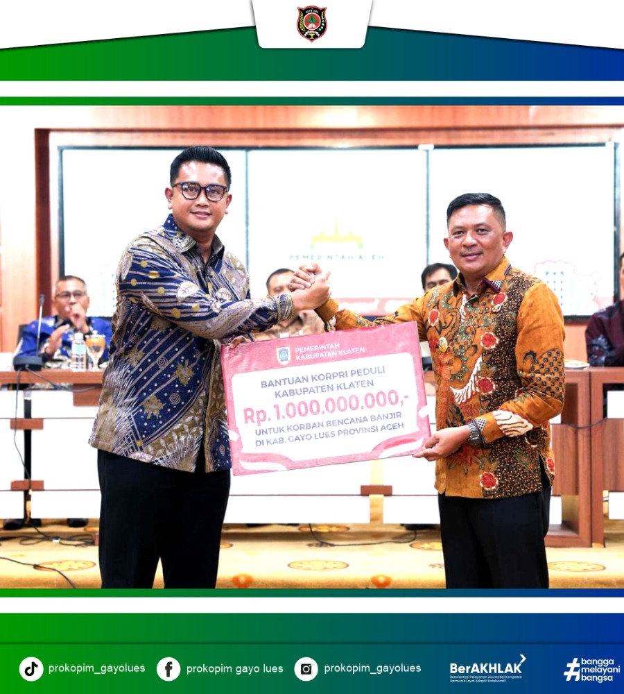 Beliau juga menyampaikan apresiasi dan rasa terima kasih atas bantuan dana yang diberikan Pemerintah Kabupaten Klaten kepada korban bencana di Gayo Lues. Bantuan tersebut dinilai sebagai bentuk nyata kepedulian dan solidaritas yang kuat antarwilayah.