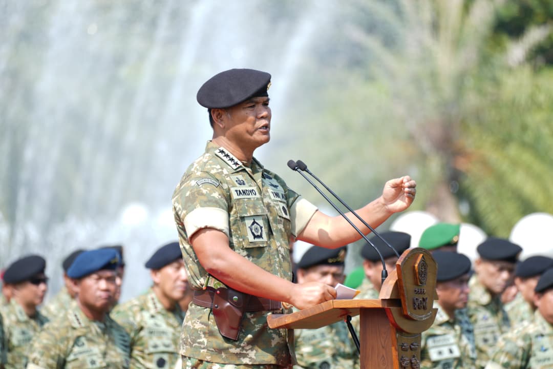 majalahsuaraforum.com-Panglima TNI Jenderal TNI Agus Subiyanto yang diwakili oleh Wakil Panglima TNI Jenderal TNI Tandyo Budi Revita melepas 180 prajurit TNI yang tergabung dalam Satuan Tugas (Satgas) Kompi Zeni (Kizi) TNI Kontingen Garuda (Konga) XXXVII-L United Nations Multi-Dimensional Intergrated Stabilization Mission in Central in Africa (Minusca Car) TA. 2025 yang dipimpin oleh Danyon Zipur 4/Tanpa Kawandya Letkol Czi Septian Hermawan Saputra, sebagai Dansatgas bertempat di Lapangan Prima, Mabes TNI Cilangkap Jakarta Timur, Selasa (14/10/2025).